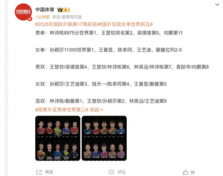 随着澳门世界杯落下帷幕,目前国际乒联更新了2025年第17周的最新世界排名,其中刚刚夺得冠军的雨果在男单的排名上升了两位,直追王楚钦。而取得糟糕成绩的林高远这些球员则是出现了暴跌的情况。另外一方面,蒯曼这些00后的年轻球员在本届世界杯取得不俗的表现,个人成绩也实现了历史性的突破,我们来详细了解一下目前的最新排名情况。